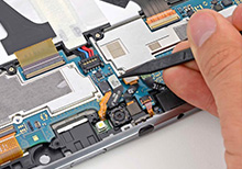Сотрудник нашего сервис центра исполняет восстановление: заменяет поврежденную часть рабочей заводской частью